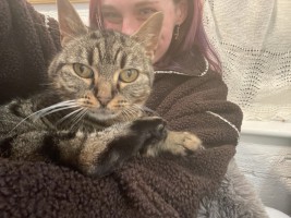 This young feral queen lived in a garden with other ferals and had not been handled prior to being rescued and admitted to the Ark. She is now showing some progress and we believe that with the right caring and patient owner could become a companian cat, especially to someone at home a lot. She would need to be kept as an indoor cat.