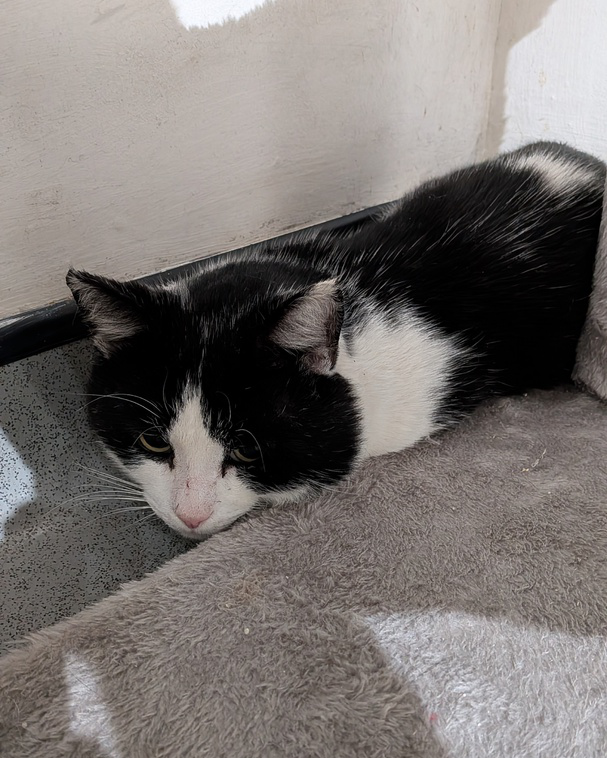 Brought in as a stray, Bruno has had a nervous start at the Ark and is pretty shy. He might come out of his shell, but for now we have to assume he's a reserved young man who appreciates peace, quiet, and a comfy place to sit.